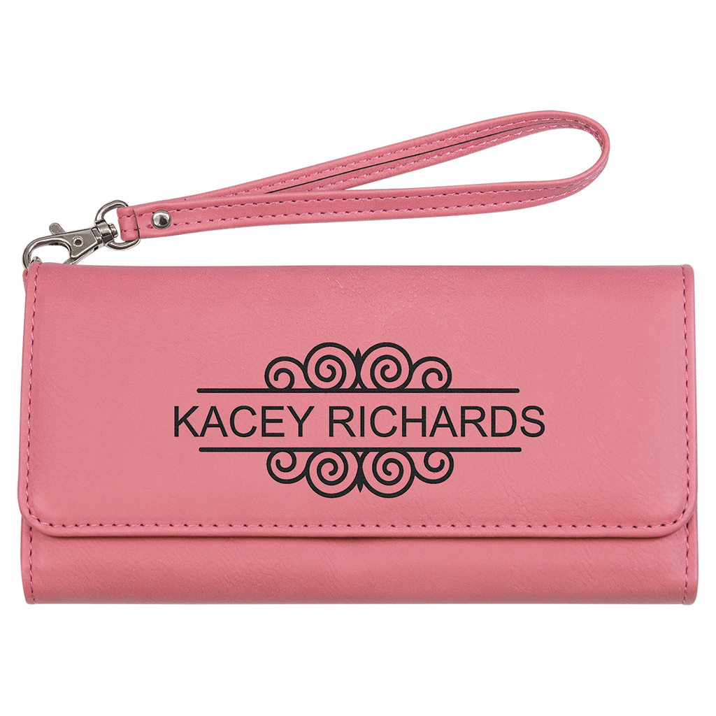 This sleek leatherette wallet offers RFID protection and 15 compartments for all your essentials. The detachable wrist strap adds convenience, while the secure snap closure and topstitching elevate its luxury design. Available in a variety of colors, personalize it for a unique and elegant gift or incentive.