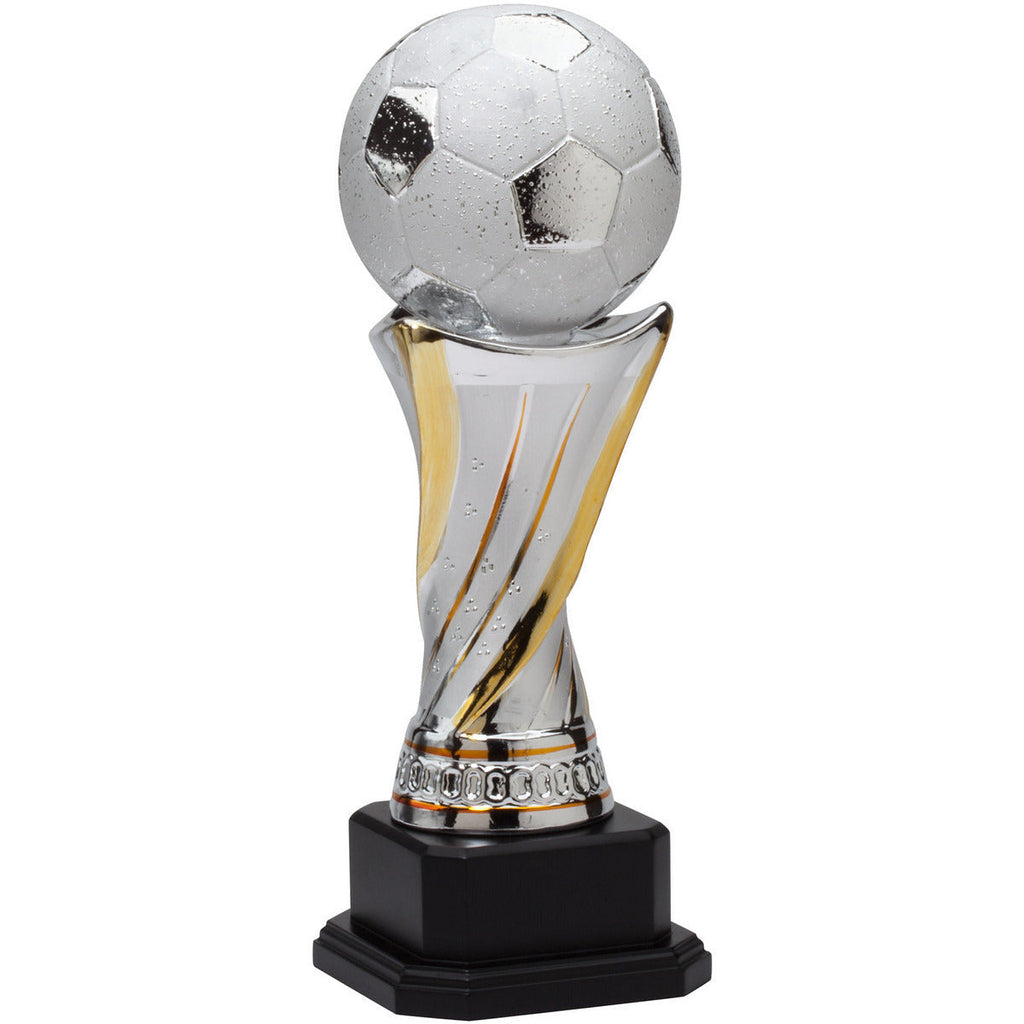 Introducing our Ceramic Soccer Sports Tower - the ultimate symbol of excellence on the field! With its striking silver and gold swirling highlights, this award is available in four different sizes and comes complete with a personalized plate on an ebony pedestal. It's the perfect way to celebrate exceptional achievements, whether by individuals or teams. So don't settle for anything less than the best - honor your champions with the Ceramic Sports Tower!