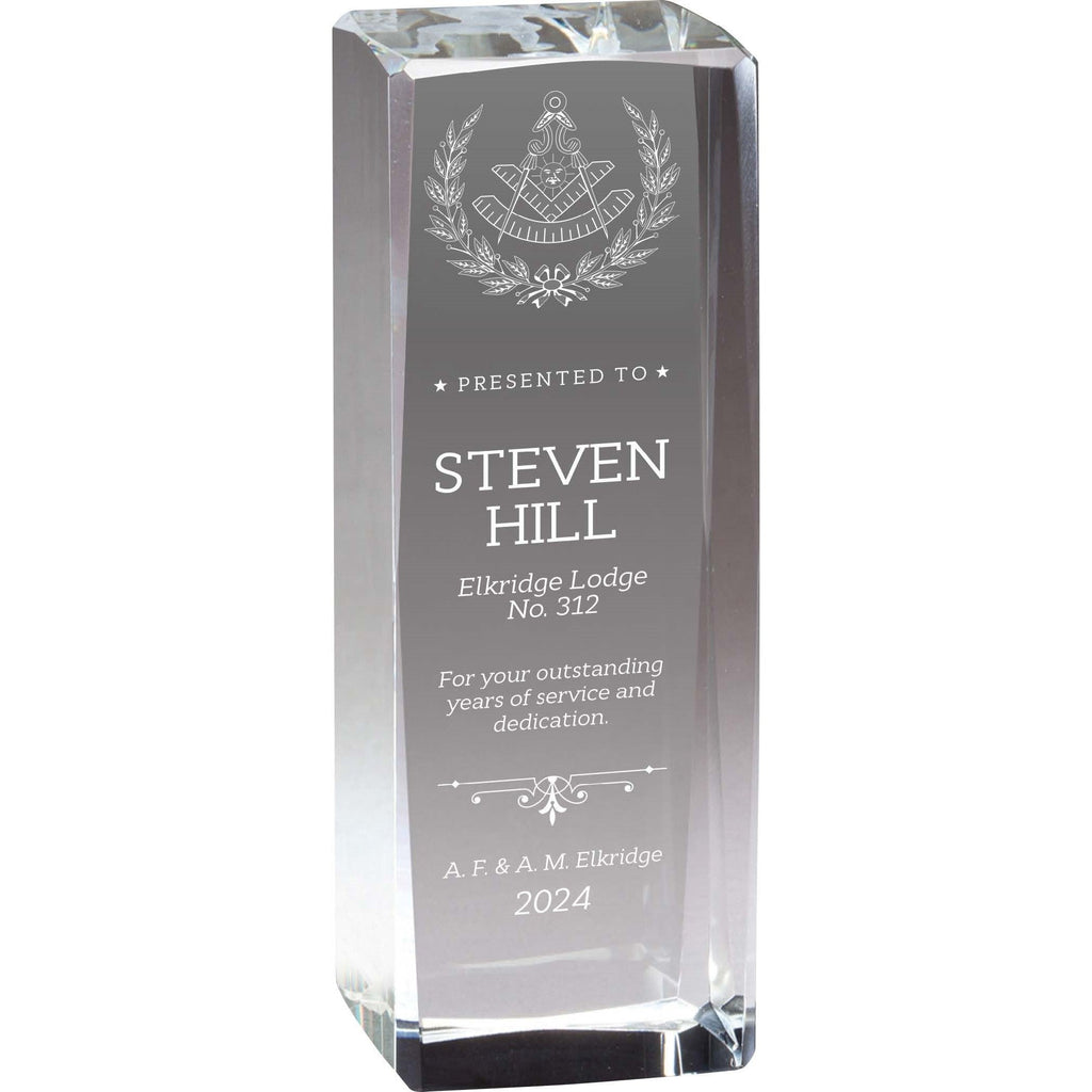 "Create your own unique design! Our Crystal Block is perfect for etching or vivid color imprinting to commemorate your special event. This stunning piece of crystal is available in three different sizes to suit any level of recognition. It's your blank canvas - let your creativity soar!"