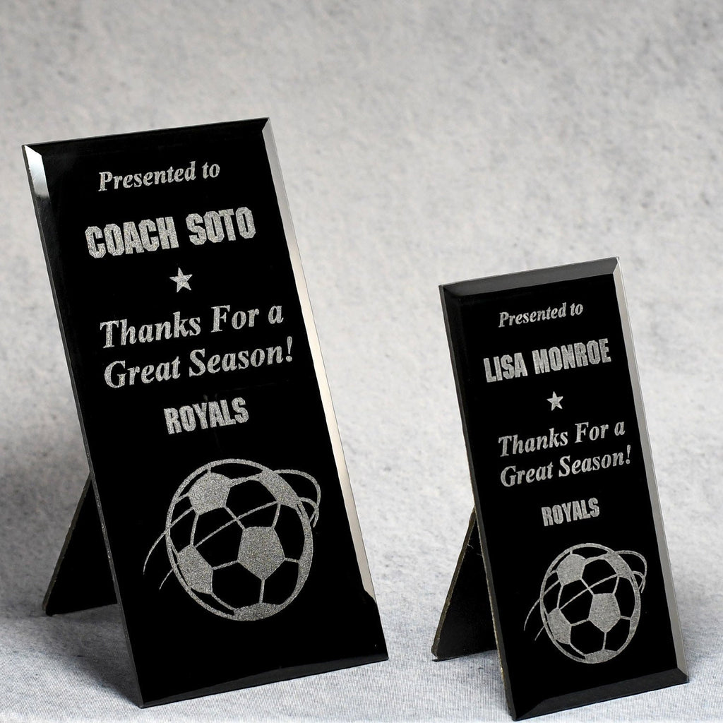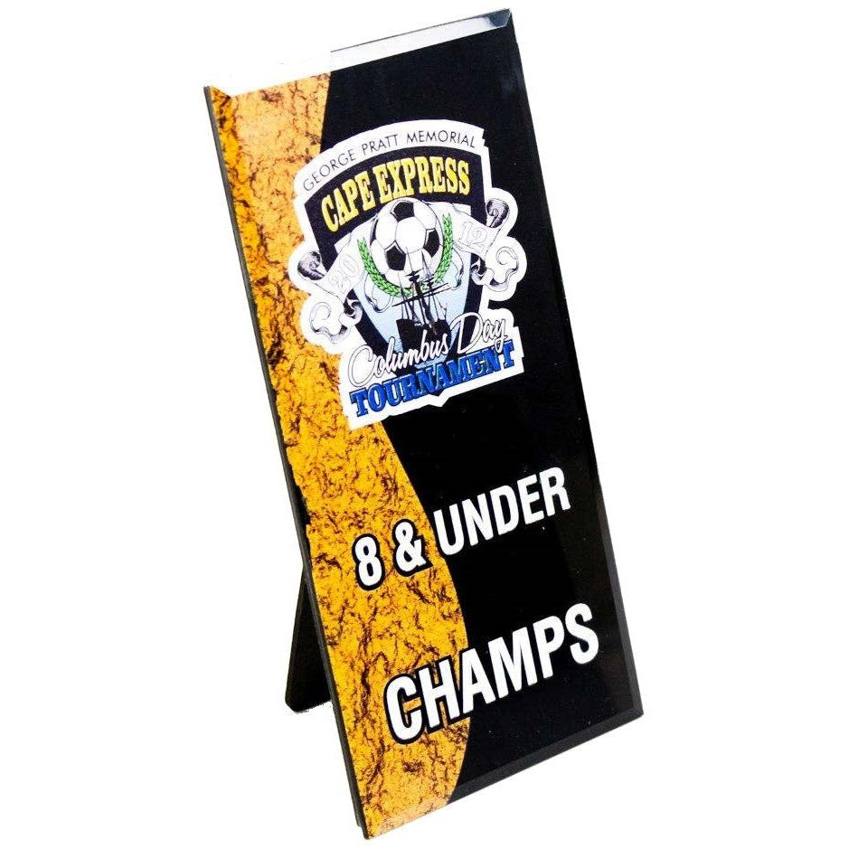 Our Exclusive Black Glass Award comes in two sizes and is a stunning and versatile recognition piece that is sure to impress. The award features a sleek jet-black glass design that can be customized with vibrant color graphics, adding a touch of personalization to the award.