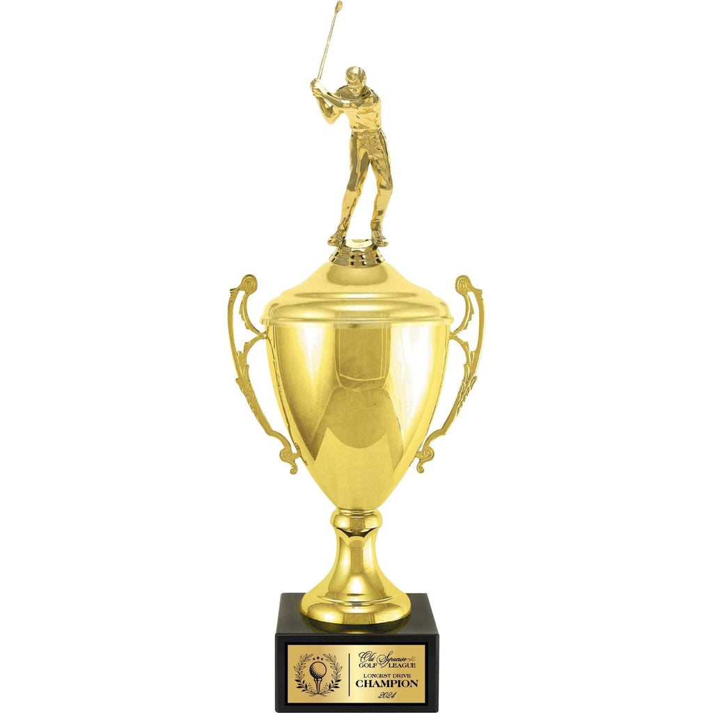 Each cup is mounted on a stunning Italian Marble Base, available in seven size and two color choices. Each cup is customizable with a figure of your choice and a matching plate for personalization to meet your specific needs. Whether recognizing achievements in sports, academics, or any other field, this cup is sure to impress and inspire.