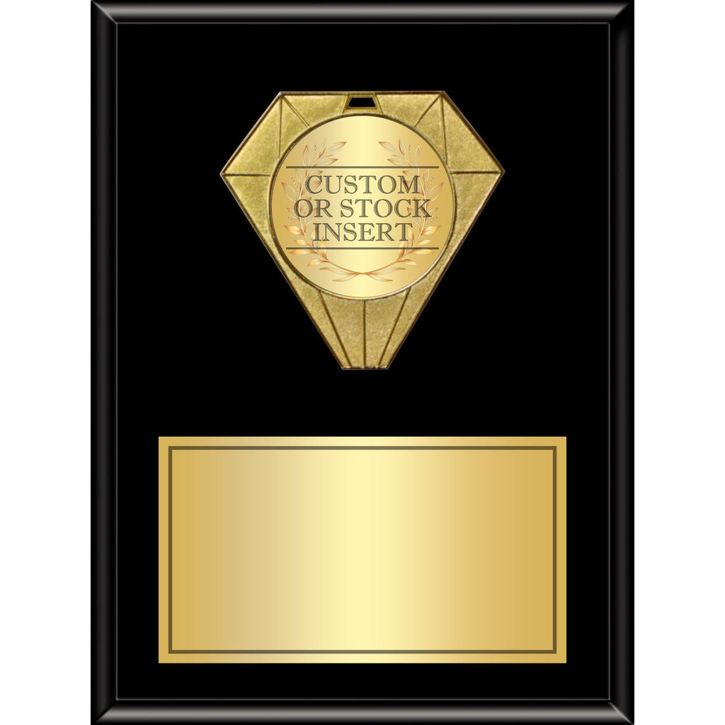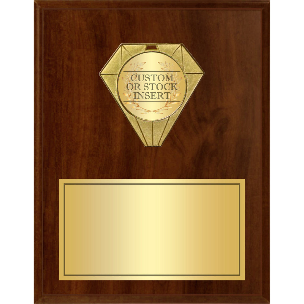 Make a statement with our Jewel Plaque Series Vertical Plaque. Its elegant design, featuring our exclusive jeweled diamond medallion, will surely impress. Personalize the medallion with an activity logo or your own design for a unique touch. And with a gold plate included, you can add a special message or accolades for the recipient. This plaque is available in 4 sizes and two color options - a handsome cherry finish or an rich ebony finish.