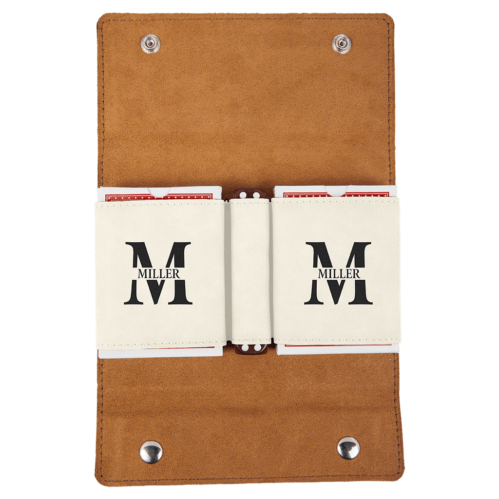 Elevate game night with our Laserable Leatherette Card & Dice Set! Featuring 2 decks of cards and 5 dice, this set is perfect for hours of fun. The faux suede interior adds a touch of luxury while the silver snaps add a touch of sophistication. And with the look and feel of genuine leather, this set is sure to impress any recipient. Personalize with laser engraving, screen or UV printing, or even vinyl for a full-color effect. Game on!