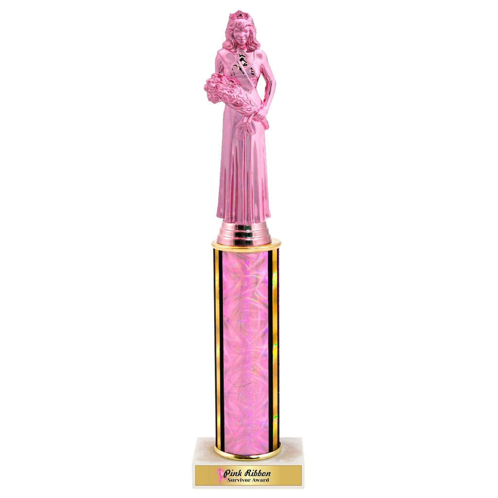Show your support for breast cancer awareness and celebrate the strength and courage of women with our Pretty in Pink Round Column Trophy. Available in three sizes, this trophy comes with customizable gold plate, this award is perfect for any Breast Cancer event. Make a statement with our unique round pink column and figure options.